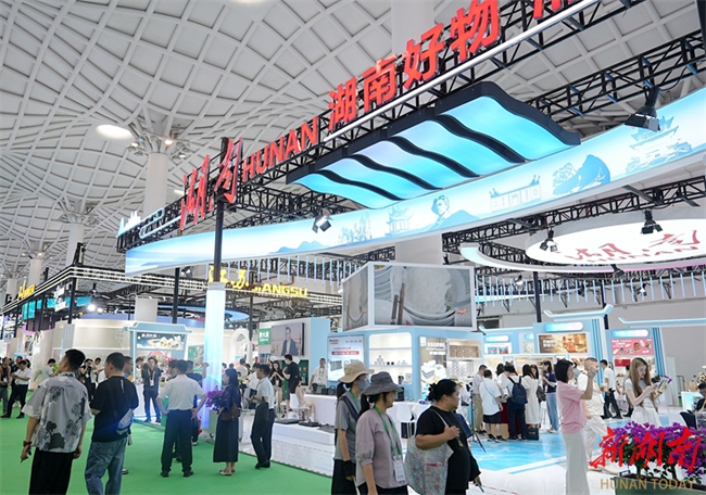 The sixth China International Consumer Products Expo (CICPE) is currently being held in Hainan Province. Under the theme "Empowerment through Openness, Hunan Trade Goes Global," the Hunan delegation set up a 500-square-meter Hunan Image Pavilion, with 43 Hunan enterprises participating. The photo, taken on April 13, shows people visiting the Hunan Pavilion at the expo. (Photo/Fu Cong, Hunan Daily)