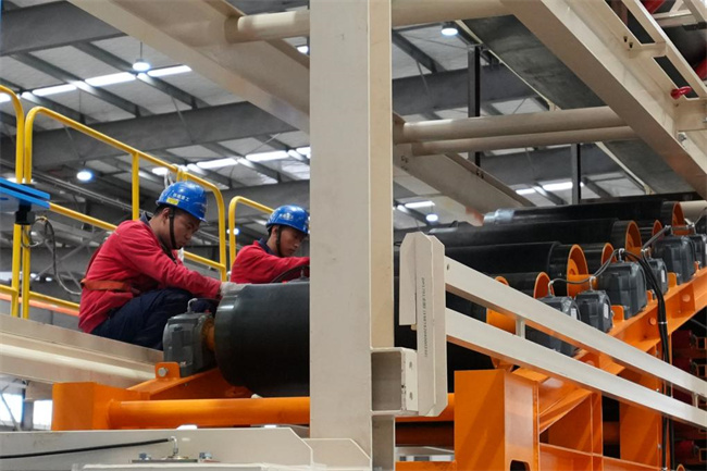 The photo above, taken on April 21, shows the continuous belt conveyor at the Third Industrial Park of the China Railway Construction Heavy Industry Corporation Limited (CRCHI) in Changsha. (Photo/Chen Zhenhai, Xinhua)