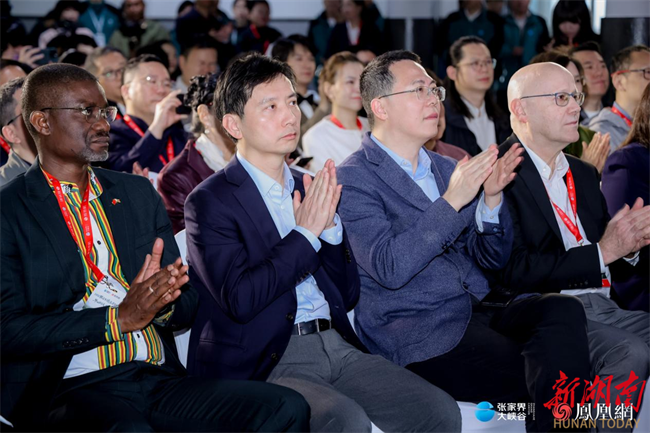 From left to right: Stanley Banda, minister counsellor at the Embassy of the Republic of Zimbabwe in China; Edward Lu, CFO of Phoenix New Media; Wu Wenhai, member of the Standing Committee and director of the Publicity Department of the CPC Zhangjiajie Municipal Committee; and Peter Ditmanson, an American professor at Yuelu Academy of Hunan University.