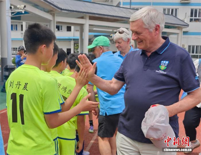 On April 26, on the football pitch at Zhentai Primary School in Shaoshan Town, Hunan Province, a former member from the University College Dublin (UCD) football team delegation interacted with the school's young players. His precise long passes traced beautiful arcs through the air, and their seamless back-and-forth play fully showcased the joy of the game.