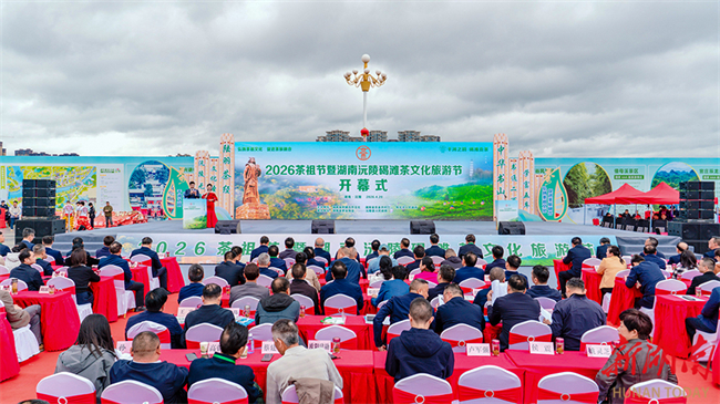 The 2026 Tea Ancestor Festival, also the Hunan Yuanling Jietan Tea Culture Tourism Festival, opened at Dragon Boat Square in Yuanling County on April 28. Themed "Promoting Tea Ancestor Culture and Advancing Tea-Tourism Integration," the festival aims to boost standardized and digital development of Jietan tea industry. In recent years, local authorities have promoted the integration of tea tourism, culture tourism, and wellness tourism, linking key resources such as Chenlong Pass. It is striving to build a brand of "Enjoy the mountains in Zhangjiajie, and savor tea while exploring the waters in Yuanling." (Photo/Tong Zhenxi and Liu Shiqi, Hunan Daily)