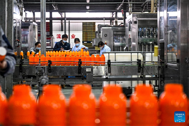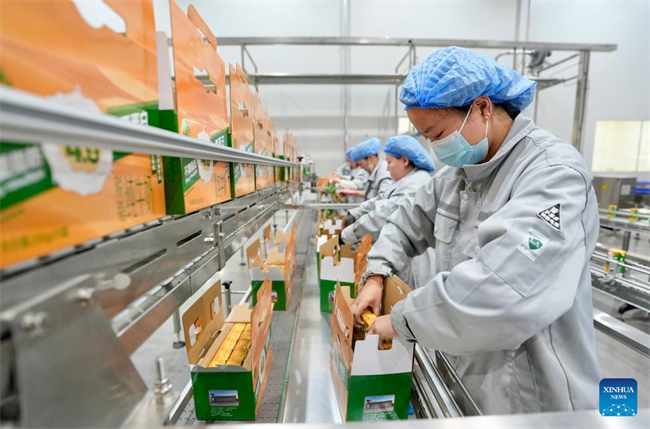 Workers work at a plant of a dairy company in Yinchuan, northwest China's Ningxia Hui Autonomous Region, Feb. 24, 2026. Factories and companies across China resumed work after the Spring Festival holiday on Tuesday. (Xinhua/Yang Zhisen)