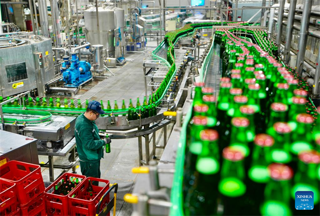 A worker works in the workshop of a brewery in Helan County, Yinchuan City, northwest China's Ningxia Hui Autonomous Region, Feb. 24, 2026. Factories and companies across China resumed work after the Spring Festival holiday on Tuesday. (Xinhua/Yang Zhisen)