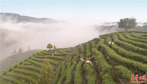 Hunan Province has made positive efforts to explore the micro-credit mode, to boost poverty alleviation via financial means. The photo shows impoverished farmers in Yizhang County developing the tea industry with micro-credit support.
