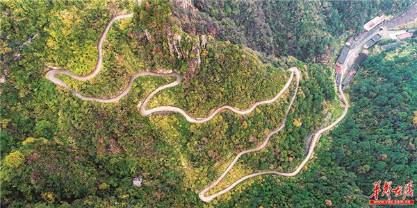 Transportation is the top priority among the seven major aspects of poverty alleviation. Hunan has expended 225.075 billion yuan on enhancing transportation infrastructure construction in impoverished regions. So far, 36,000 administrative villages have access to highways, which laid a solid foundation for eliminating poverty on schedule. The photo shows a highway winding along cliffs at Lashu Village, Cili County.