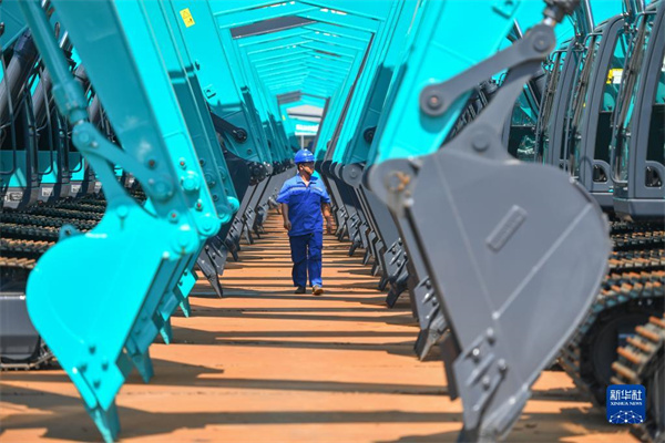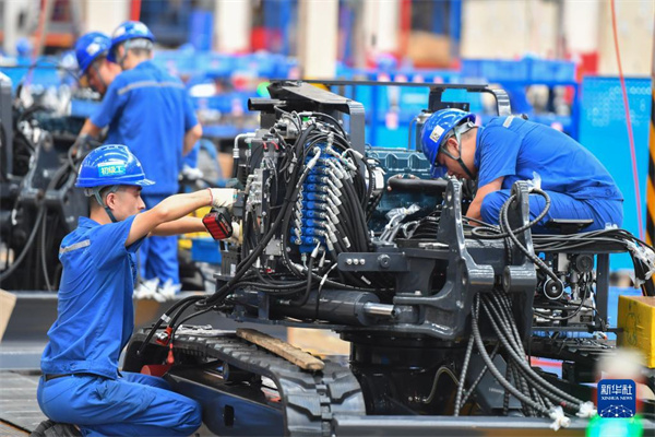 Workers assemble machinery at Sunward Intelligent Equipment Co., Ltd. in Changsha Economic and Technological Development Zone, Hunan Province. (Photo/Chen Zeguo, Xinhua News Agency)