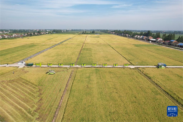 The photo shows a mechanized harvest scene at a plantation base in Caowei Town, Yuanjiang City, Hunan Province. (Photo/Zhong Zubiao, Xinhua News Agency)