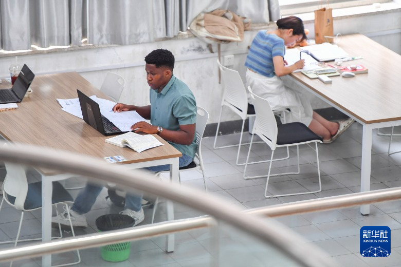 He Ding studies at the CSU Library on June 14. (Photo/Chen Zeguo)