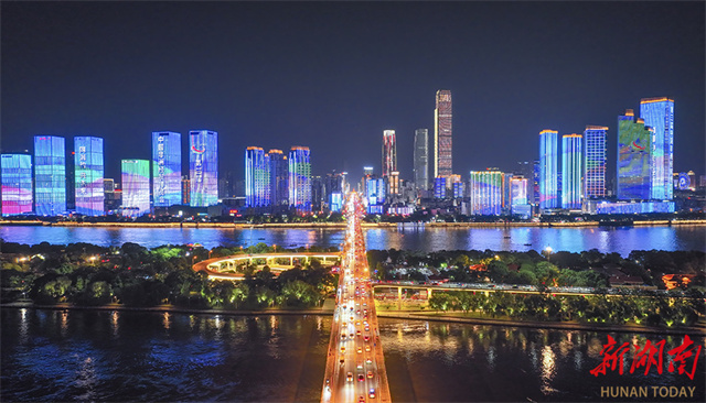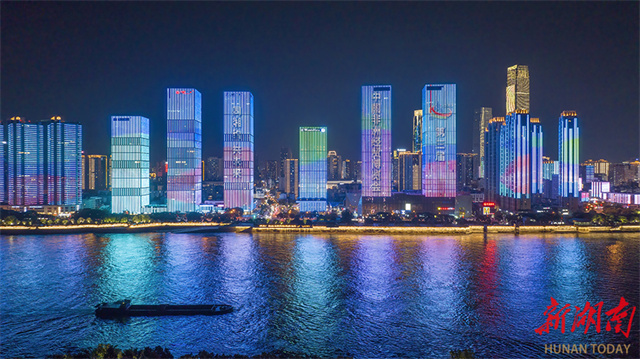 A light show themed on the third China-Africa Economic and Trade Expo (CAETE) was staged on landmark buildings along the Xiangjiang River in Changsha on the evening of June 28. The third CAETE is scheduled to take place in Changsha from June 29 to July 2. With the theme of "Common Development for a Shared Future", it aims to provide new impetus for China-Africa economic and trade cooperation. (Photo/Gu Pengbo, Hunan Daily)