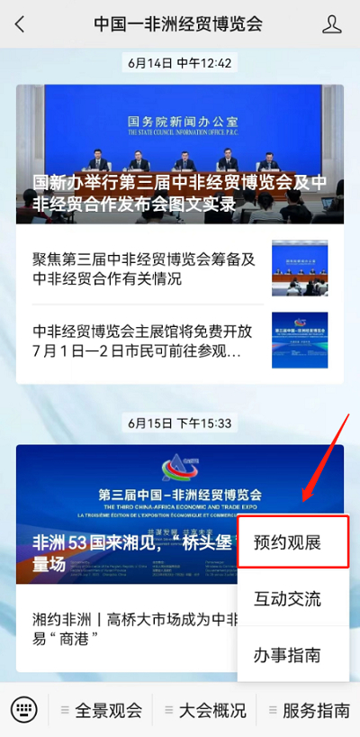 - Search the CAETE WeChat public account, and click "预约观展 (Appointment)" to make a reservation.