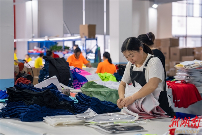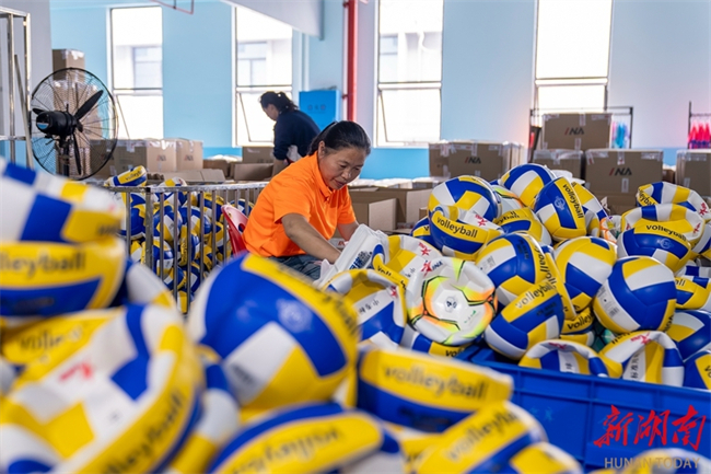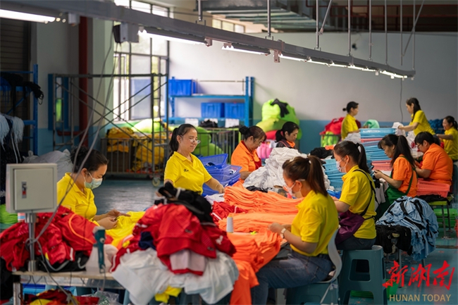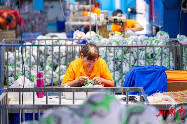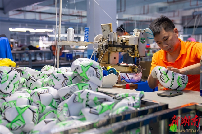 The photo, taken on May 8, shows workers busy producing sporting goods for export to Nigeria at the workshop of a sporting goods company in Loudi Economic and Technological Development Zone. In recent years, the company has leveraged the China-Africa Economic and Trade Expo, seizing the opportunity to expand its business overseas and promote its products to Africa. (Photo/Tong Zhenxi and Yu Miao, Hunan Daily)