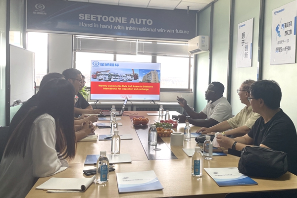 To further advance the implementation of the project facilitating Changsha-made new energy vehicles' entry into Ghana, Mr. Annan, chairman of the Ghana-China Economy and Investment Co., Ltd., visited the Changsha Seetoone International Trade Co., Ltd. (Seetoone) in Changsha County recently. During the visit, Mr. Annan observed the company's production processes and quality management systems that align with international standards, and exchanged views on the implementation of an online ride-hailing electric vehicle project in Ghana.