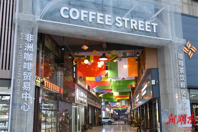 Photo shows the Coffee Street, an African coffee trade center, in the Gaoqiao Grand Market in Changsha, central China's Hunan province. (Photo/Gu Pengbo)
