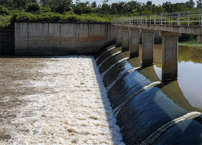 This photo taken on Feb. 20, 2025 shows the water intake structure of the Lower Nzoia Irrigation Development Project in Siaya County, Kenya. (Xinhua/Li Yahui)