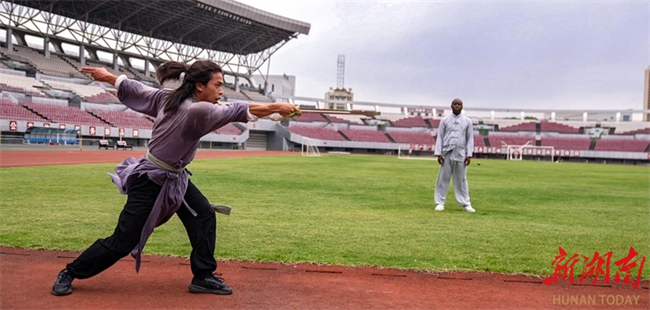 Hu Jianfeng, known online as "Hunan Swordsman", taught Meishan martial arts to an African friend at the Loudi Sports Center on May 21. Demonstrating and explaining each movement and gesture, Hu enabled his African apprentice to experience both the swiftness and power as well as the profound cultural roots of this martial art form, fostering cultural exchange between China and Africa.