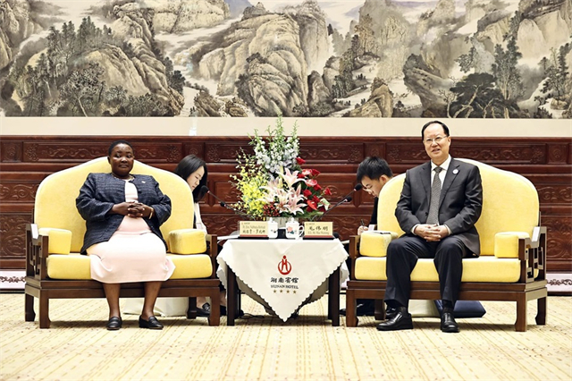 Mao Weiming, deputy secretary of the CPC Hunan Provincial Committee and governor of Hunan Province, met in Changsha with Robinah Nabbanja, prime minister of the Republic of Uganda, and her entourage on June 12, 2025. They came to attend the Fourth China-Africa Economic and Trade Expo (CAETE).